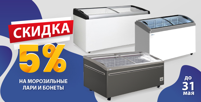 В магазине «Витрина» до 31 мая скидка 5 % на морозильные лари и бонеты марок Italfrost, «Бирюса», Haier, Frostor. Выбирайте подходящую модель со склада или под заказ по выгодной цене и заказывайте на сайте, с помощью онлайн-консультанта, в магазине или по телефону в Иркутске +7 (3952) 780-760.